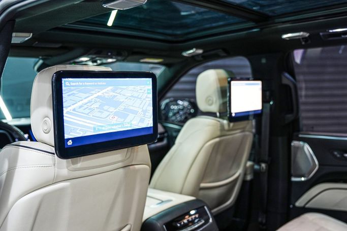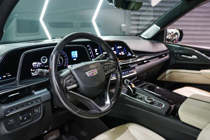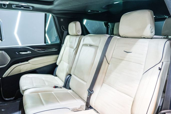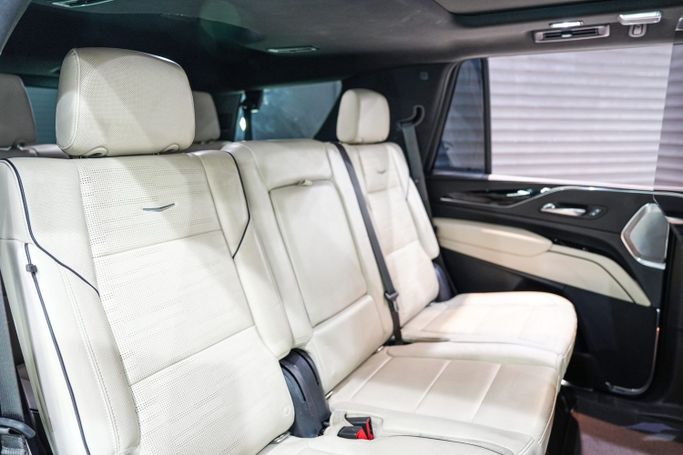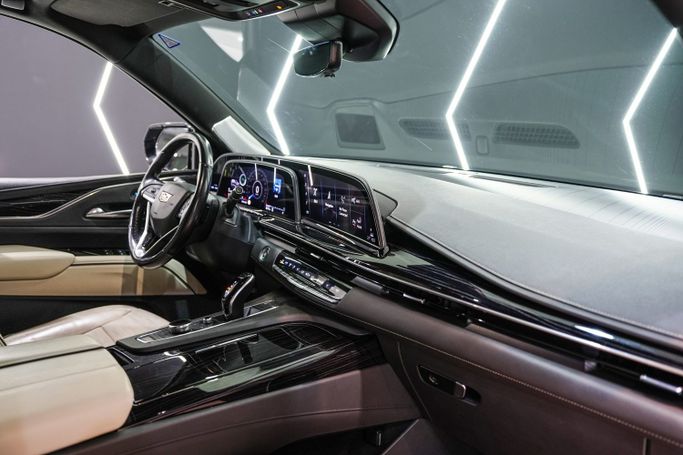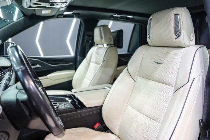 Cadillac Escalade Sport GCC Specs, Panoramic Roof, Retractable Side Steps, AKG Sound System, Rear-Seat Entertainment, Ventilated Seats, Heated Steering Wheel, Console Refrigerator, Ambient Lights, Navigation System, Magnetic Ride Control, Air Suspension, Head-Up Display, Blind Spot Assist, Forward Collision Warning, Adaptive Cruise Control, Lane Keep Assist, 360° Camera, 22 Inch Wheels