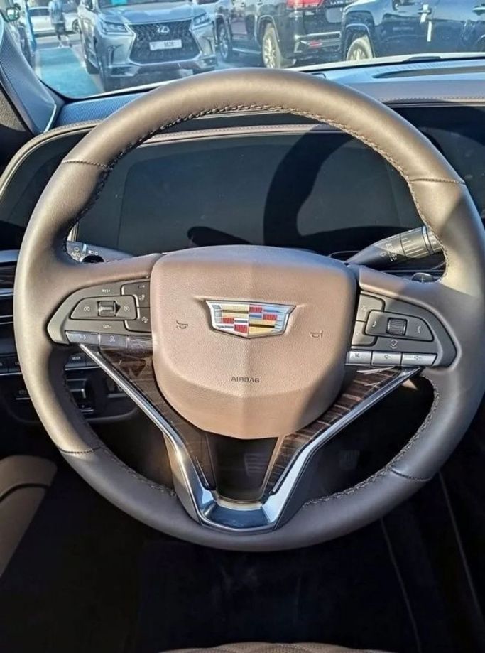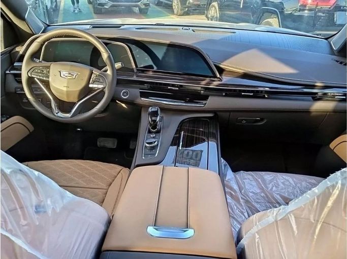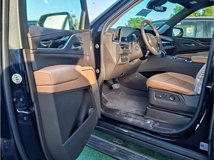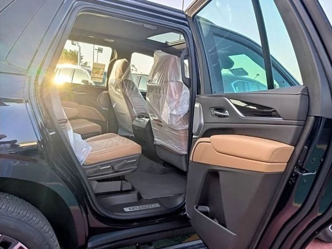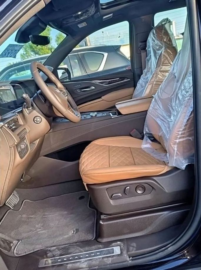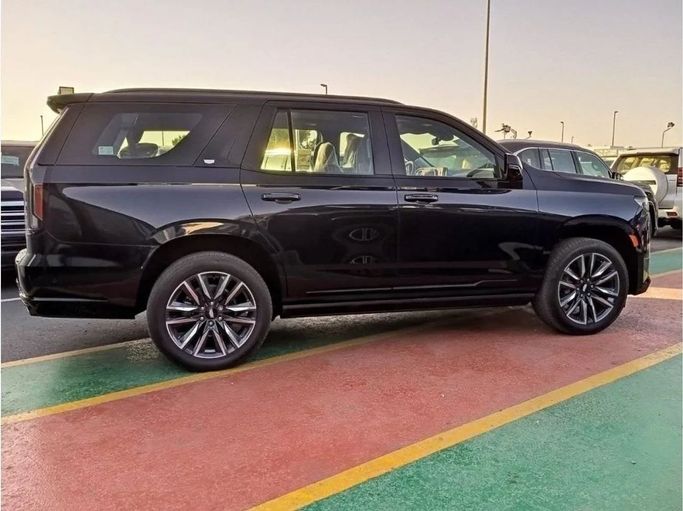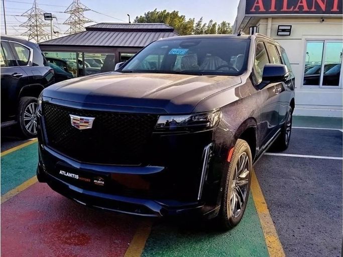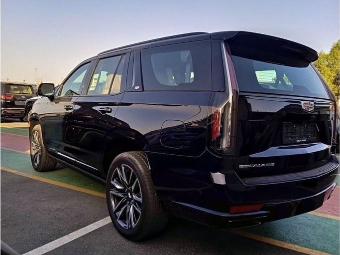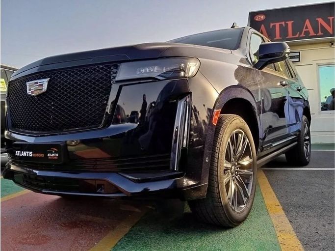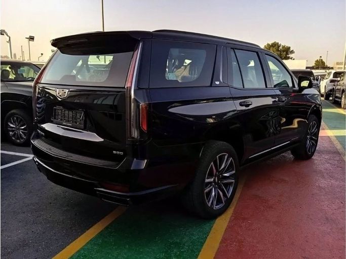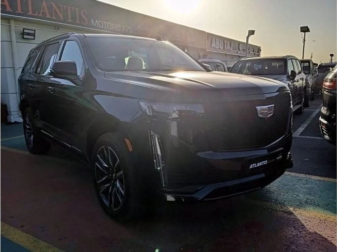 New 2022 Cadillac Escalade V (generation V) in black, equipped with a 6.2-liter V8 delivering 420 hp, an automatic transmission, and all-wheel drive. It presents a bold, disciplined look with Cadillac’s distinctive proportions and premium detailing, while the interior focuses on comfort and quiet refinement. The cabin offers generous space, supportive seating, and high-grade materials, complemented by a technology suite that includes a large touchscreen infotainment system, navigation, wireless charging, and a premium audio setup. Practicality is enhanced by flexible seatin