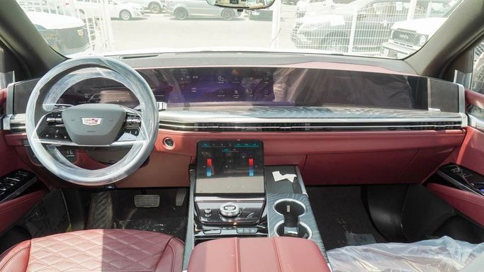 New Cadillac Escalade 6.2L V8 for sale from Najem Motors FZE in Dubai. Black 2025 model. The car has automatic gearbox, 8 cylinder engine, 22″ wheels and burgundy interior. GCC specs.