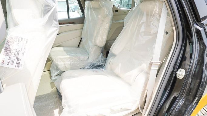 Brand new Cadillac Escalade 6.2L V8 for sale in Dubai. Black 2025 model, available at Najem Motors FZE. This car has automatic transmission, 8 cylinder engine, 22″ wheels and beige interior. GCC specs.