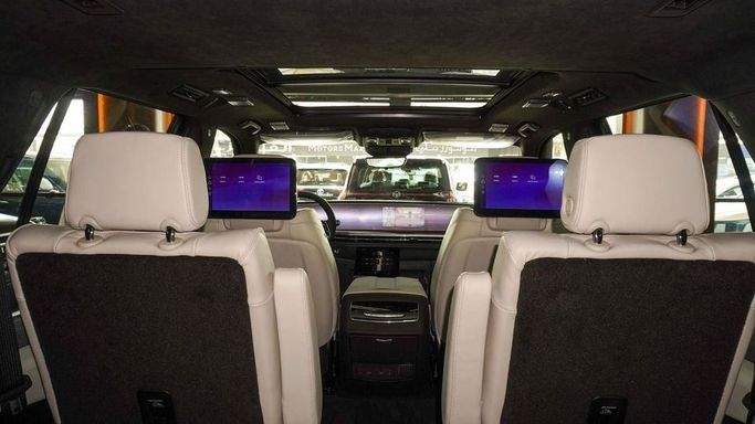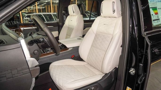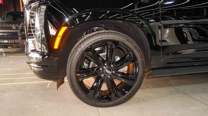 Brand new Cadillac Escalade for sale in Dubai. Black 2025 model, available at Najem Motors FZE. This car has automatic transmission, 8 cylinder engine, 24″ wheels and beige interior. GCC specs.