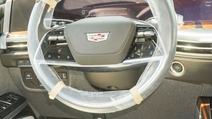 New 2025 Cadillac Escalade 6.2L V8 for sale in Dubai. Available from Najem Motors FZE. Automatic transmission, 8 cylinder engine, 22″ wheels and beige interior. Never driven, GCC specs.