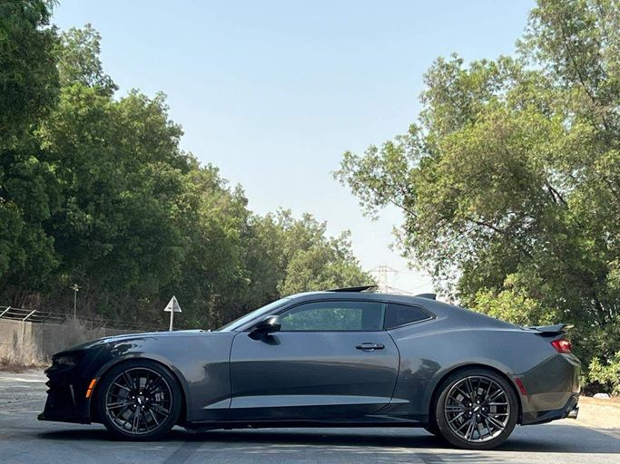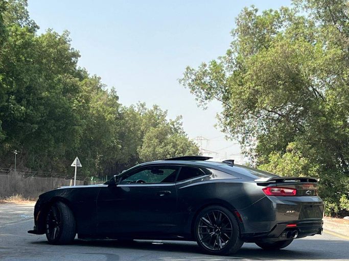 Camaro ZL1 2018: The Powerful Sports Car We present the 2018 Camaro ZL1, a powerful sports car with outstanding performance and a bold design. Specifications: - Model: 2018 - Color: Gray - Trim Level: GCC Specification Features: - High Performance: Powered by a robust engine and equipped with rear-wheel drive - Bold Exterior Design: Includes LED lights and aluminum alloy wheels - Sporty Interior Cabin: Features leather seats and an automatic dimming rear-view mirror - Advanced Safety Technology: Equipped with automatic emergency braking and a tire pressure monitoring s
