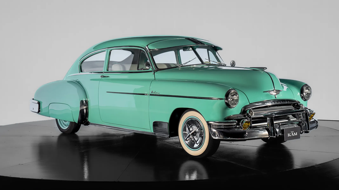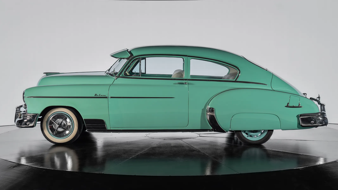 Despite being a family car, the Fleetline Deluxe found its way into hot rod and lowrider culture, particularly in the 1950s and beyond. Its fastback shape and spacious body made it a popular choice for customization, and many examples have been modified with custom paint, white-wall tires, and lowered suspensions, giving them an even more striking appearance. The 1950 Chevrolet Fleetline Deluxe in our showroom is a beautifully customized version of this classic model, blending vintage charm with modern upgrades. While the iconic fastback body remains original, the engine h
