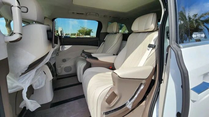 Introducing the new 2023 Denza D9 minivan, which combines cutting-edge technology and comfort to create the perfect conditions for city life and family trips. This electric minivan, with a power output of 275 kW, provides reliable and rapid acceleration, while its all-wheel drive ensures excellent road grip in any conditions. Its elegant white color gives the vehicle a modern and stylish appearance, reflecting the spirit of the times and sustainable technology. It is interesting to note that Denza is a joint venture between giants such as Daimler and BYD. This collaboratio