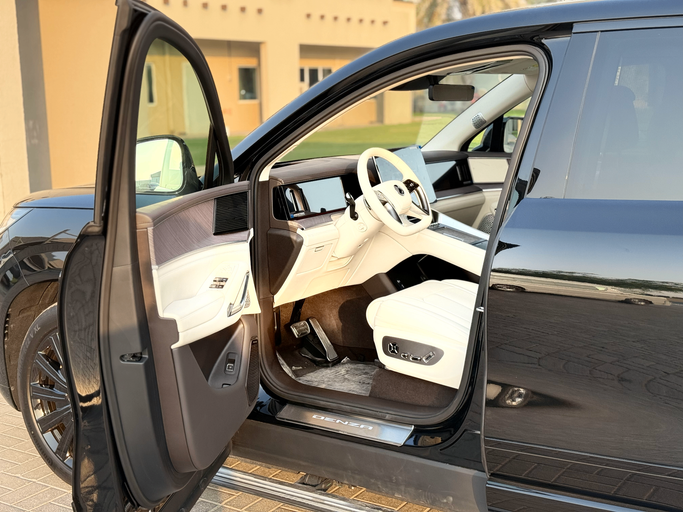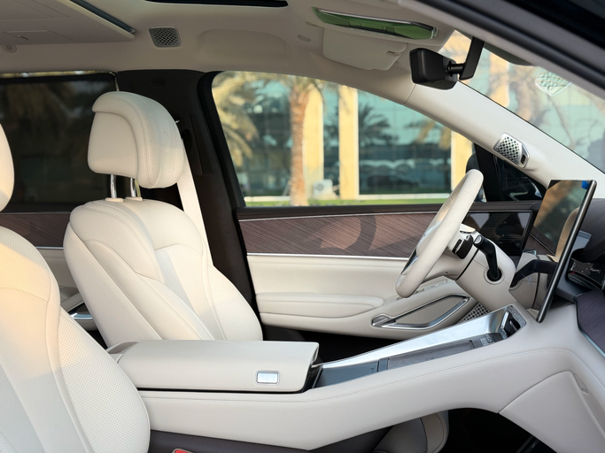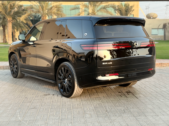 Denza N9 is one of the largest and most advanced Chinese luxury SUVs available in stock in Dubai. Main features: - Automatic doors - Devialet high-end sound system - Massage seats in the first and second rows - Head-up display - Rear steering - Tank U-turn - "Crab walk" mode - Premium R22 wheels - Autoparking - Zero-gravity mode About us: We have expert-level knowledge of premium Chinese electric and hybrid vehicles, which is why we call ourselves EVExperts. Test drives are available at our showroom. We handle SIM setup, system localization, insurance, and delivery. Co