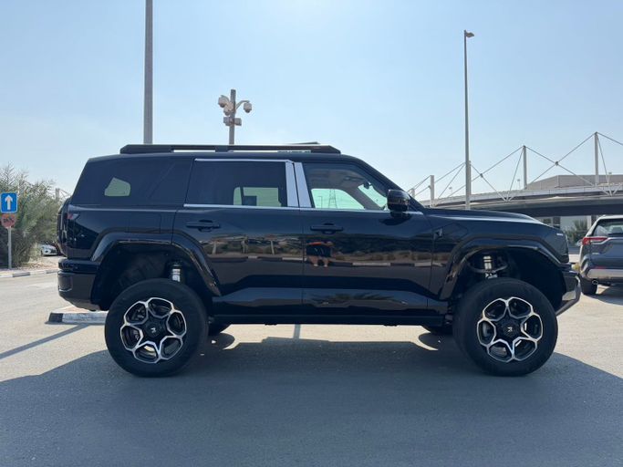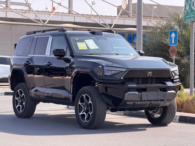 New 2025 DongFeng Mengshi M-Hero 817, a five-door SUV in black, pairs a 1.5-liter hybrid system with an automatic transmission and all-wheel drive to deliver up to 748 horsepower. This setup provides brisk acceleration and solid traction across conditions while keeping efficiency in mind, suited to everyday use and more demanding drives alike. The exterior design presents a contemporary, athletic silhouette, with a deep black finish that emphasizes a premium, restrained look. Inside, the cabin focuses on comfort and ease of use, supported by a modern tech layout designed fo