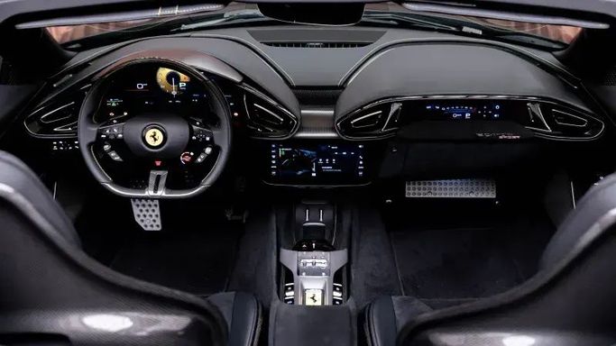 The Ferrari 12Cilindri Spider represents the pinnacle of open-top grand touring — a celebration of pure Ferrari heritage. Under its sculpted lines lies a naturally aspirated V12 engine that delivers over 800 hp, revving with a symphony only Maranello can compose. This configuration, finished in Nero Black with a black interior, perfectly blends elegance with intensity — classic yet unmistakably modern. Every curve and carbon detail reflects precision and purpose, while the retractable roof invites the full orchestra of that V12 masterpiece. On Dubai’s sunlit roads, the 12Ci