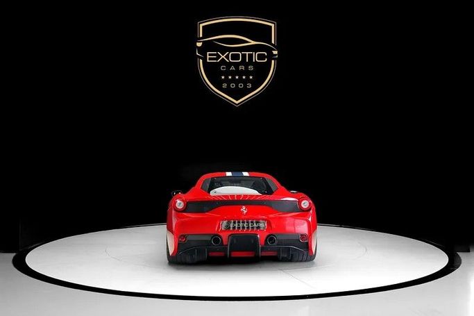 This 2014 Ferrari 458 Speciale, finished in a vivid red, is a two-seat coupe that blends extreme performance with a refined, usable character. With a single prior owner and only about 9,000 miles on the clock, it presents a rare mix of low mileage and careful usage, offering a clean, well‑presented example of this track-focused road car. Power comes from a 4.5‑litre V8 that delivers 605 horsepower, revving to 9,000 rpm, and is paired with a seven‑speed automated manual transmission and rear-wheel drive. The Speciale variant brings sharper responses and aero refinements tha