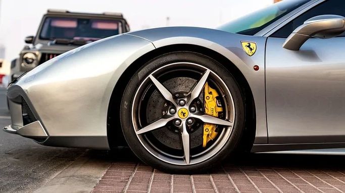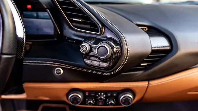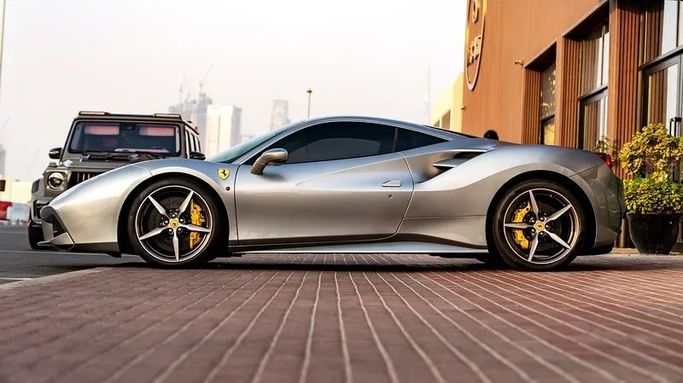 2016 Ferrari 488 GTB - Full Ferrari Service History - Carbon Fiber Package - Very Low Kilometers - GCC Specifications Instalment Price: AED 22,966 monthly with a 20% down payment over 2 years. Engine Size: 3.9L V8 RWD BHP: 661 bhp Transmission: 7-Speed Automated Manual Gearbox Mileage: 23,538 km Condition: Excellent Full Options List Includes: - Keyless Entry / Start - Interior Color: Beige Tradizione - 13042 - Exterior Color: Grigio Titanio Metall - FQ3238 - Carpet Color: Nero 152 Black - Adaptive Front Lighting System (AFS) - Yellow Bra