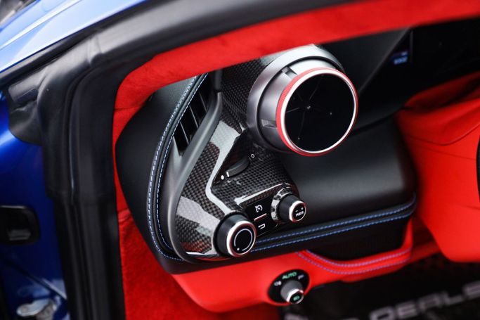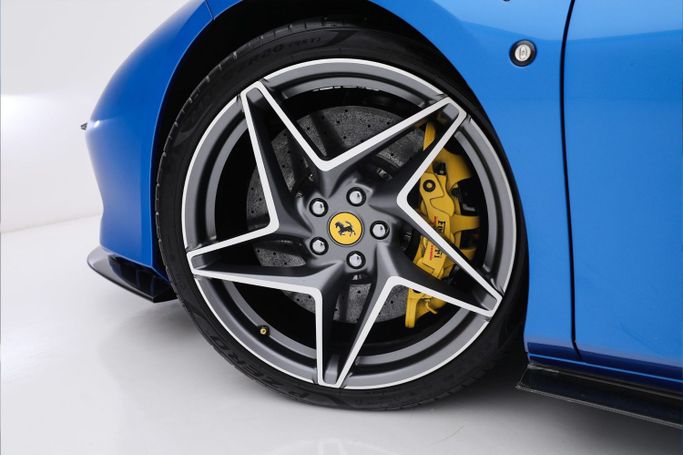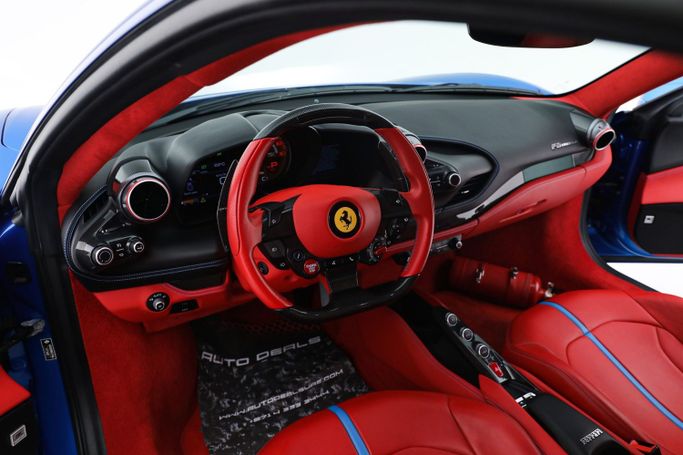 This 2020 Ferrari F8 Tributo is a blue coupe powered by a 3.9-litre twin-turbo V8 delivering 720 hp, paired with a seven-speed automated manual transmission and rear-wheel drive. It carries GCC specifications, has had a single owner, and shows 9,302 miles, presenting a clean history and well-preserved condition. The Tributo edition emphasizes aero-inspired styling and racing heritage cues, while the driver-focused cockpit features supportive seats, digital instrumentation, and intuitive controls that make the most of the car’s high-performance character. Balanced between ex