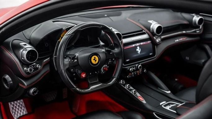 Selling Price: AED 780,000 2017 Ferrari GTC4 Lusso Mileage: 35,900 Km GCC Specs Under Dealer Warranty till Oct 2025 Engine Size: 6.3L V12 Horsepower: 680 HP Exterior Color: Rosso Corsa Interior Color: Leather Nero Options: Yellow Brake Callipers Front Grille with Chromed Edges Carbon Fibre Driver Zone with LEDS Carbon Fibre Central Bridge Coloured Safety Belts (Rosso) Dash Inserts in Carbon Fibre Panoramic Roof Cavallino Stitched on Headrest (Rosso 0504) Sport Exhaust System Handy Fire Extinguisher Coloured Mats with Logo High Emotion Low Emission ‘Scuderia Ferrari’ Shields