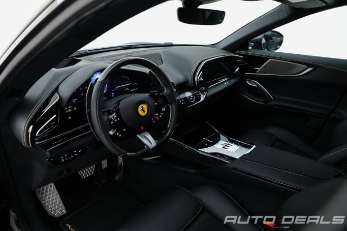 Ferrari Purosangue — a one-of-one masterpiece, finished in matte black—the color of understatement—and specified with absolute full equipment. Inside and out it features everything you can order in Alcantara, leather, and carbon fiber; every factory extra selected—nothing missing. One of the most beautiful and best-equipped Purosangue examples you’ll find. This 2024 Ferrari Purosangue in black is a carefully maintained, low-mileage used example with European specifications and a single previous owner. It packs a 6.5-liter naturally aspirated V12 delivering 725 horsepower, p