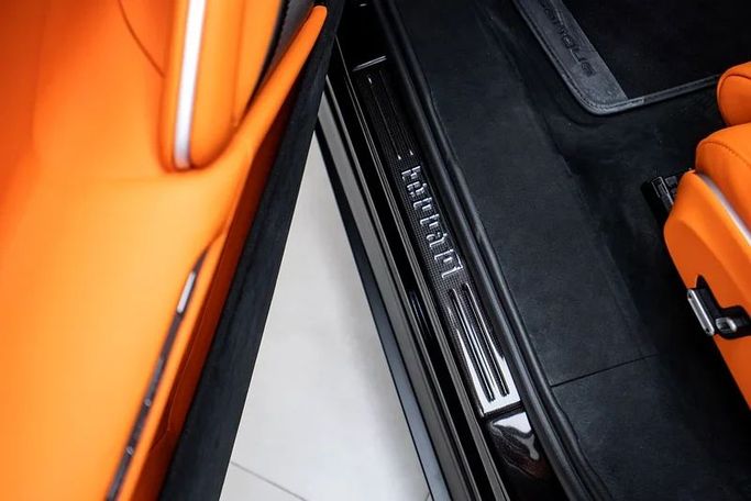 *Exterior Extrarange Classic Colours Nero Daytona (Daytona Black) WB508 *Interior ALCANTARA NERO 9441 *Air Quality Sensor *Yellow Brake Callipers *Carbon Fibre Wheelhouse flares *Rear Diffuser in Carbon fibre *Carbon Fibre Underdoor cover *Carbon Fibre Outer Mirrors *Carbon Fibre Instrument cover *Carbon Fibre Door Panels *Upper Part of centre console in Carbon Fibre *COLOURED SEAT BELTS in YELLOW *Black Hubs Caps *Panoramic Roof *Front Lift *Cavallino Stitched on Headrest in Nuovo Giallo (New Yellow) thread *Black Tailpipes tips *Carbon Fibre front spoiler *Additional colo