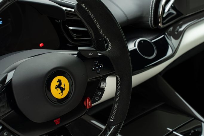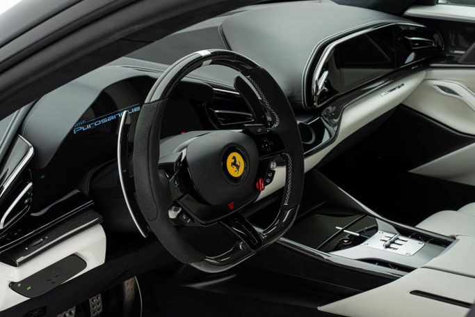 X MOTORS Cars. Passion. Perfection. 2025 Ferrari Purosangue | FULL Specification Price: AED 2.55 Million This 2025 Ferrari Purosangue, painted in a Stealthy Black exterior paired with an Extended Bianco Leather interior is a sparingly driven vehicle that is Lavishly equipped with optional exterior and interior Carbon Fibre packages along with special cavallino stitchings and the panaoramic roof to name a few. The Purosangue is a new direction from the Italian powerhouse and one that is unlike any other SUV. Key Features & Highlights: Performance & Capability: • Eng