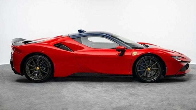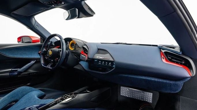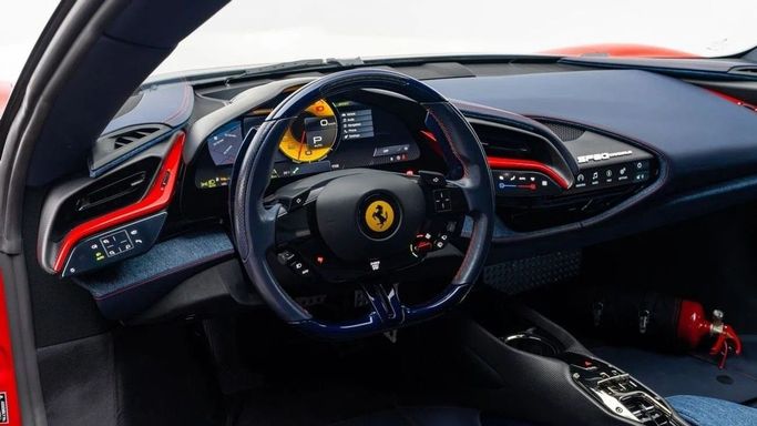 Selling Price: AED 2,390,000 Starting from: AED 36,248 per month Payable in 5 Years with 20% Down Payment Bank terms & conditions may apply 2022 Ferrari SF90 Stradale Tailor Made Ispirazioni Mileage: 2,957 Km GCC Specs Under Warranty and Service Contract Engine Size: 4.0L V8 + Three Electric Motors Horsepower: 986 Hp Exterior Color: Rosso TRS | Blu Scozia Interior Color: Kuroki Superstone Denim | Blu Sterling Options ADAS: ADAS Full Pack AFS1: Adaptive Frontlight System AIP: Internal Painted Aluminium Elements (Off-Catalogue) AINP: Dashboard Inserts Painted Aluminium Elemen