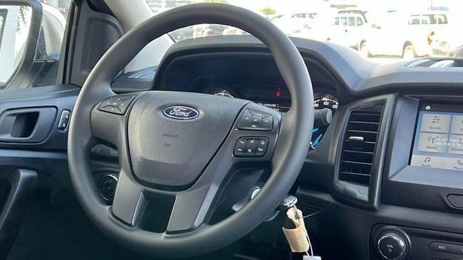 New 2022 Ford Ranger T6.2 in white, tailored for GCC specifications, presents a practical double-cab pickup powered by a 2.0-liter diesel producing 150 horsepower. The pairing of a manual transmission with rear-wheel drive offers a direct, engaging feel for everyday use, with solid low-end torque for payloads and highway cruising alike. Inside, the double cab delivers comfortable seating for five and durable, easy-care furnishings, while a straightforward cabin layout keeps controls simple and accessible. The Ranger’s robust chassis and proven suspension balance work duties