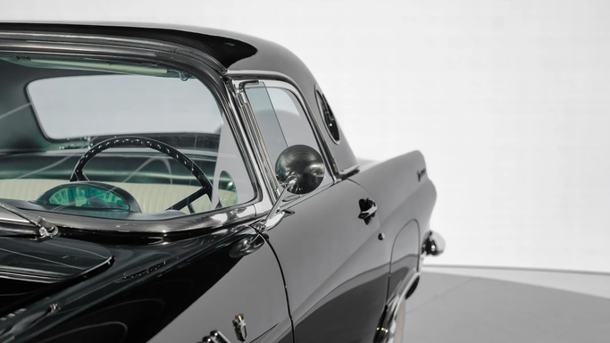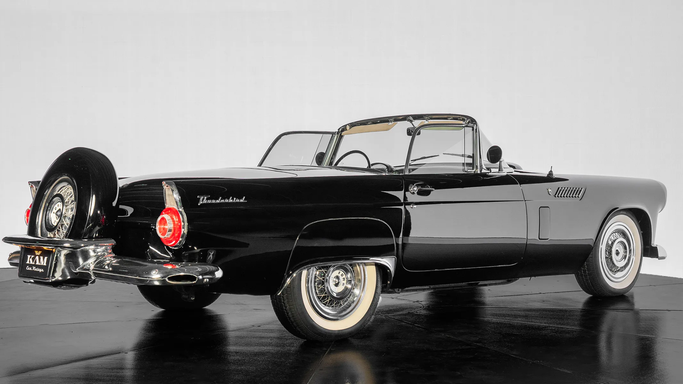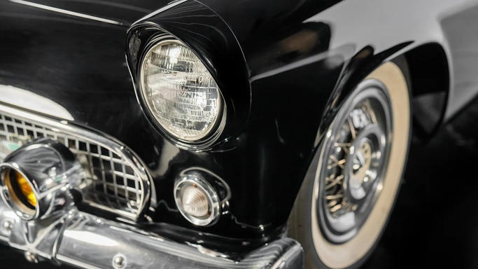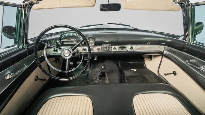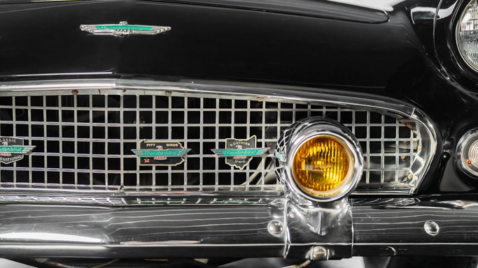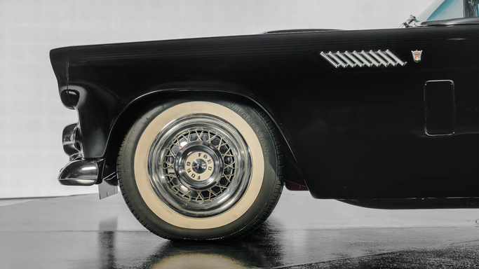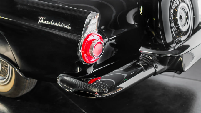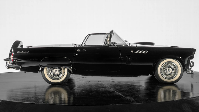 Designed under Frank Hershey, the Thunderbird drew inspiration from European roadsters but remained distinctly American, with its long hood, low stance, and sculpted side panels. It featured a wraparound windshield, chrome detailing, and round porthole windows on the removable hardtop, adding a touch of elegance and improved visibility. The egg-crate grille and jet-inspired tail lights reflected 1950s aviation influences, a common theme in American car design at the time. An interesting fact about the 1956 Thunderbird is that it played a pivotal role in the "personal luxur
