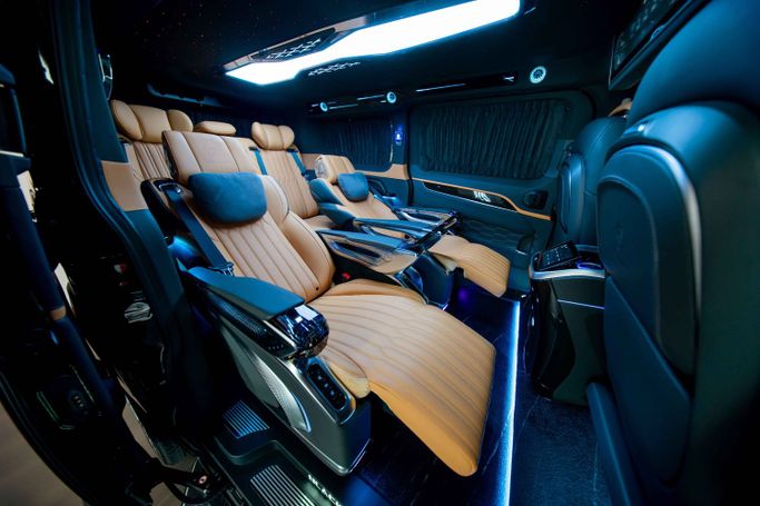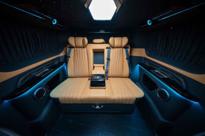 Vehicle Model & Year: Ford Tourneo VIP Black Mamba - 2025 Mileage: 0 KM Warranty Information: 1 Year Warranty & 1 Year Service Contract from Royal Swiss Regional Specification: Imported Spec Luxury Highlights Built into this Masterpiece • 2 Fully Reclining VIP Captain Seats in Premium Microfiber, featuring Round Touchpad Controls for Massage, Ventilation, Heating • 3-in-1 Premium Microfiber Sofa Bed with Built-in Tablet for Seat Adjustment • Alcantara Luxury Curtains • Alcantara Roof with Roof Lighting & Starlights with Shooting Stars • Roof Side Corners with Running Am
