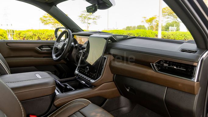 Introducing the 2025 GMC Yukon, a magnificent blend of luxury, performance, and capability. This new incarnation of the V Facelift generation SUV stands out not only in its bold black exterior but also in its robust features designed to meet the demands of both urban and adventurous lifestyles. Powered by a formidable 6.2-liter gasoline engine, generating an impressive 420 horsepower, the Yukon ensures that every drive is exhilarating yet smooth, thanks to its advanced automatic transmission. The all-wheel drive system enhances traction and stability, making it ideal for a