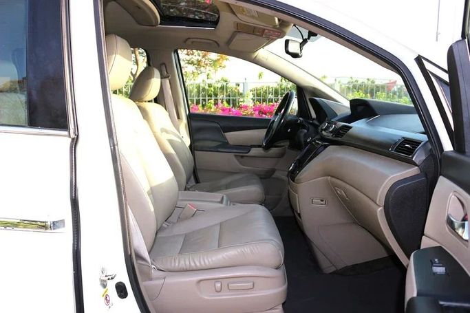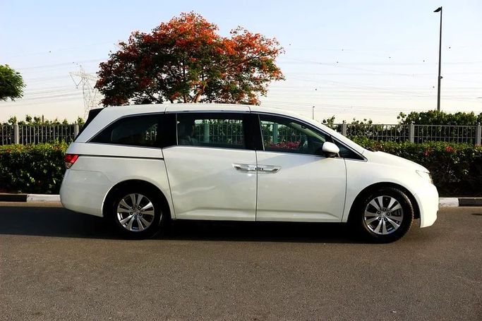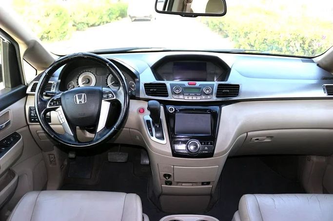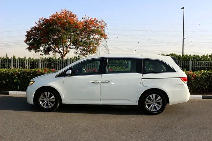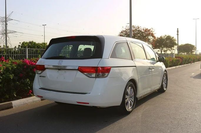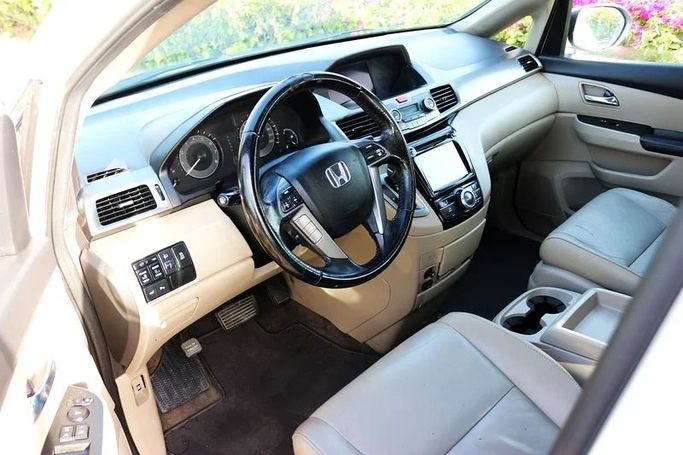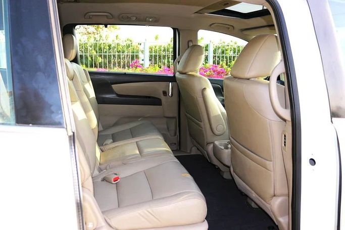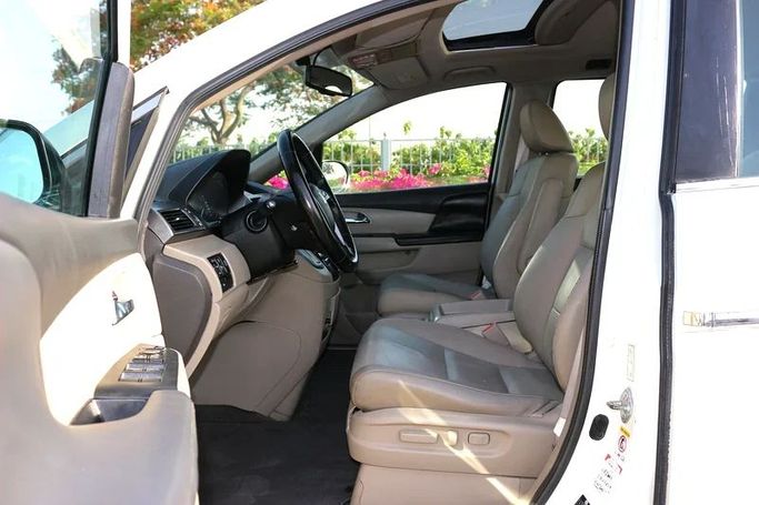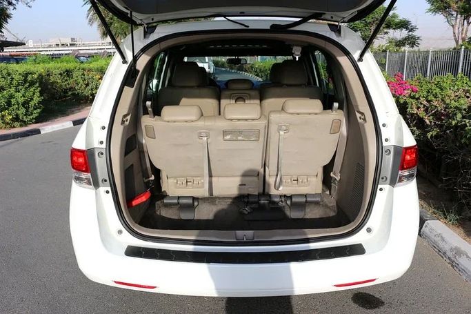 Honda Odyssey LX Full options 2014 Gulf space full options leather seat sunroof electric sliding door rear camera push start This 2014 Honda Odyssey V is a practical and family-friendly minivan finished in white, built to handle daily use and longer trips with reliable Honda engineering. It pairs a 2.4-liter petrol engine producing about 190 horsepower with a smooth CVT and front-wheel drive, delivering steady performance and comfortable daily driving. With one owner and roughly 190,000 kilometers, it presents a well-maintained interior geared for versatility, offeri