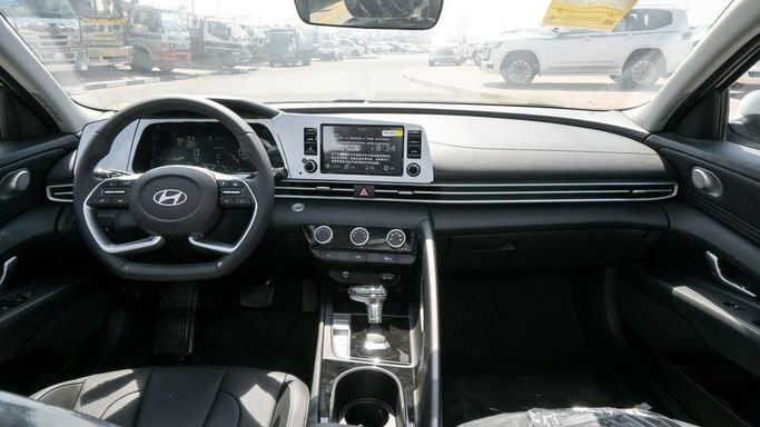 Brand new Hyundai Elantra for sale in Dubai. White 2024 model, available at Najem Motors FZE. This car has automatic transmission, 4 cylinder engine, 17″ wheels and black interior. Chinese specs.