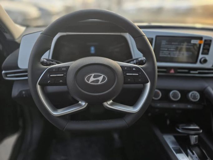 The 2025 Hyundai Elantra CN7 Facelift in sleek black offers a refined compact sedan that blends modern design with everyday practicality. It is powered by a 1.6-liter petrol engine delivering 128 horsepower, paired with an automatic transmission and front-wheel drive for smooth, confident performance in city streets and on highways. The CN7 facelift brings a more contemporary exterior—sharper lines, a refreshed grille, and streamlined headlights—while the cabin emphasizes comfort and usability with supportive seats, a clean instrument panel, and intuitive tech that keeps yo