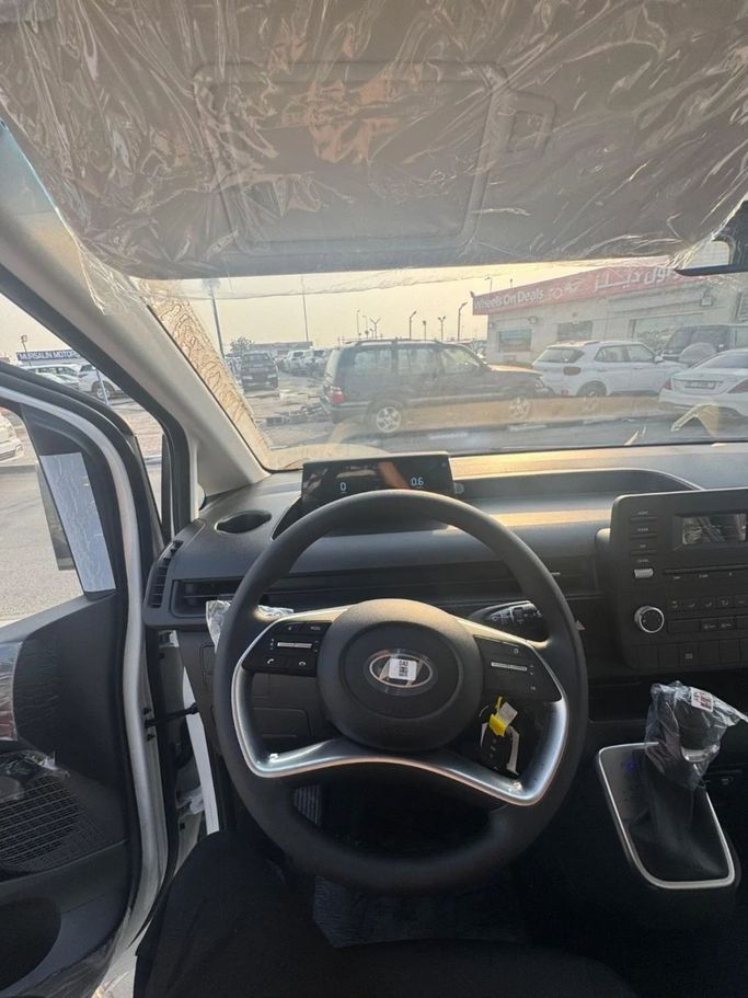New for 2025, the Hyundai Staria van comes in a clean white finish. It is powered by a 3.5-liter petrol engine producing 272 hp, paired with an automatic transmission and front-wheel drive for smooth daily driving. The GCC-spec configuration reflects regional requirements while prioritizing a comfortable, quiet cabin and flexible space that suits family use or practical business needs. Inside, the Staria offers a roomy, well-organized layout with contemporary styling and intuitive controls, balancing modern design with functional practicality for longer trips. The exterior