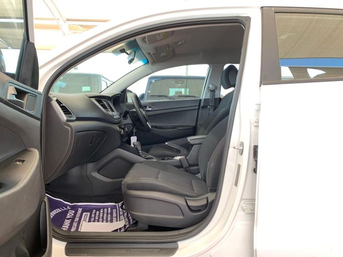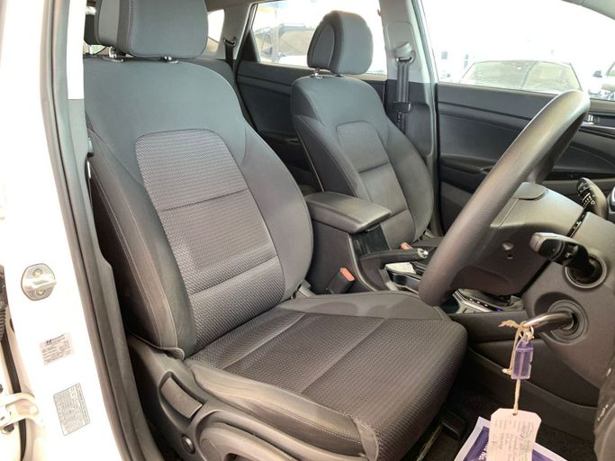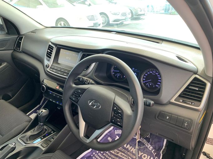 This 2016 Hyundai Tucson is a third‑generation compact SUV finished in white and equipped with a 1.6‑liter petrol engine delivering 177 horsepower, paired with an automated manual transmission and front‑wheel drive. It has had a single owner and shows 61,712 km on the odometer, suggesting careful use and a solid maintenance history. Inside, the cabin focuses on comfort and practicality, with supportive seating, easy-to-read controls, and flexible storage that makes daily commuting and weekend trips straightforward. The drivetrain offers a balanced blend of responsive perfor
