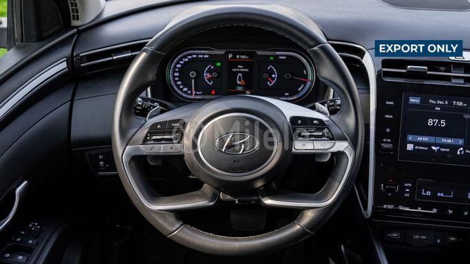 The 2022 Hyundai Tucson IV is an impressive blend of style, performance, and modern technology, making it an outstanding choice for those seeking a versatile SUV. With its sleek black exterior, the Tucson commands attention on any road while offering a spacious and comfortable interior designed for both driver and passengers. The all-wheel drive (AWD) system ensures you maintain control in various weather conditions, providing peace of mind for family trips or daily commutes. With a powerful 180 horsepower gasoline engine paired with an Automated Manual Transmission (AMT),