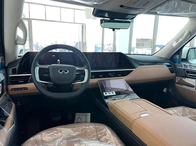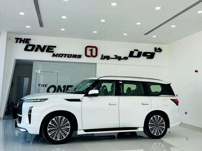 New and ready in 2025, the Infiniti QX80 Sensory II arrives in a crisp white finish, offering a strong presence in a spacious 5-door SUV package. It is powered by a 3.5-liter petrol engine delivering 450 horsepower, paired with an automatic transmission and all-wheel drive for confident performance in a variety of conditions. The GCC-spec version aligns with regional requirements and comfort preferences, ensuring the SUV is well suited to local roads and climates. On the road, the QX80 II blends forceful acceleration with a refined, steady ride. The combination of its subs