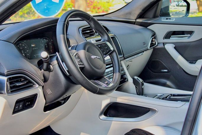 The 2019 Jaguar F-Pace SVR, Generation I, in pure white, combines power and practicality in a 5-door SUV format. Under the hood is a 5.0 L gasoline V8 engine that produces 550 hp. This power, combined with an automatic transmission and all-wheel drive, provides confident acceleration and smooth driving on the road. With only one owner and a mileage of 55,000 km, this vehicle indicates careful operation and is in good condition. The Canadian specifications enhance the market-appropriate configuration, preserving the SVR character while adapting the vehicle to local condi