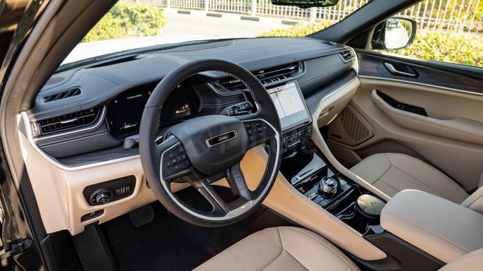 Introducing the all-new 2023 Jeep Grand Cherokee, a culmination of rugged performance and refined comfort. This fifth-generation SUV, characterized by its bold and aggressive styling, seamlessly combines impressive capability with luxurious amenities, making it an ideal companion for both urban adventures and off-road excursions. Under the hood, the Grand Cherokee boasts a powerful 3.6-liter gasoline engine that delivers an exhilarating 297 horsepower. The automatic transmission complements this robust engine, providing smooth and responsive shifting so you can tackle any
