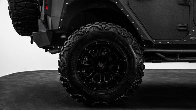Selling Price: AED 299,000 2017 Jeep Wrangler by SoFlo Custom Mileage: 3,147 Km American Specs Engine Size: 3.6L V6 Horsepower: 450 HP Exterior Color: Black Interior Color: Red