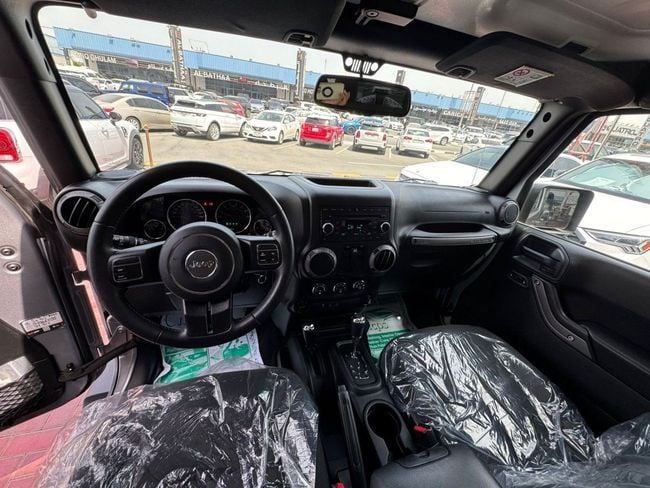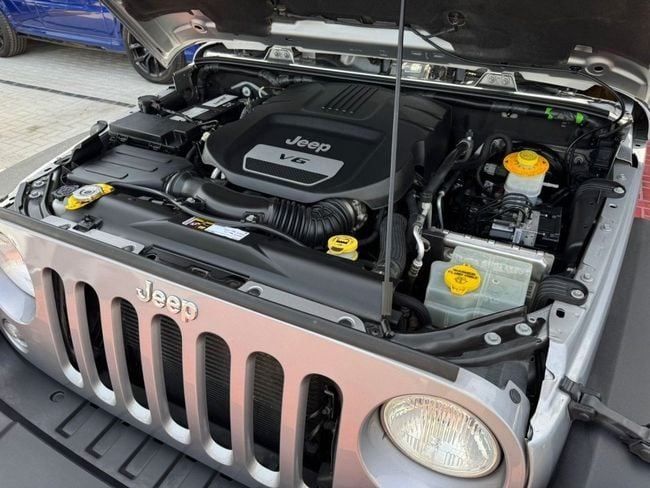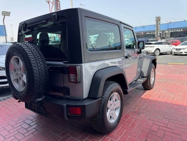 Specifications: – Model Year: 2017 – GCC Specs – Mileage: 46,000 km – Exterior Color: Silver with black hardtop – Interior: Black fabric – clean and smoke-free – Engine: 3.6L V6 – Transmission: Automatic – Drivetrain: 4WD – Fuel Type: Petrol – Body Style: 2-door hardtop – Wheels: Stock alloy wheels with excellent tires Features: – Removable hardtop – Cruise control – Power windows and mirrors – Hill descent control – AUX and CD player – Manual AC – Dual front airbags – Fog lights – Spare tire mounted at the rear – Clean dashboard and upholstery – Foldable rear seats for car