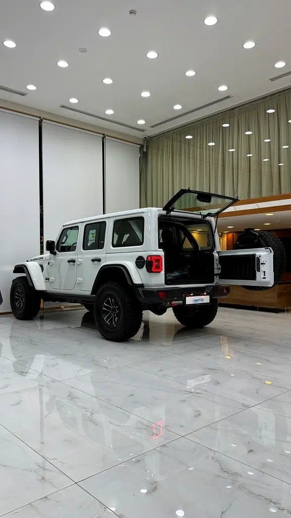 New 2025 Jeep Wrangler JL Facelift in white presents a balanced blend of rugged capability and everyday comfort in a five-door SUV. It is powered by a 3.6-liter petrol V6 producing 290 horsepower, paired with an automatic transmission and standard all-wheel drive to handle varied road and light off-road conditions with confidence. The GCC-spec designation ensures regional requirements and equipment align with Gulf markets. The facelift brings refreshed styling cues and an upgraded cabin feel, helping the Wrangler look modern while preserving its distinctive, purposeful char