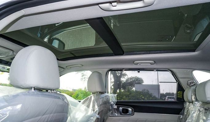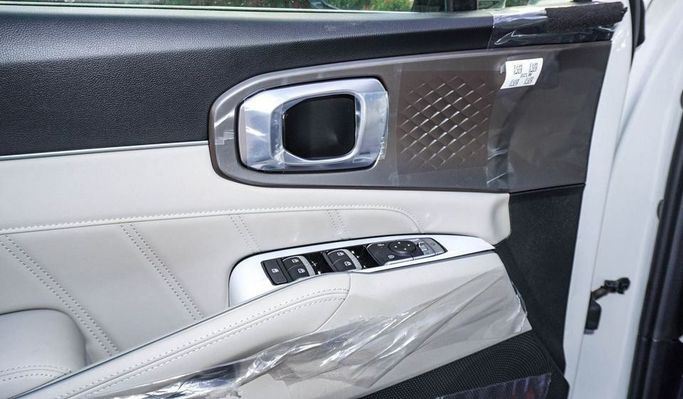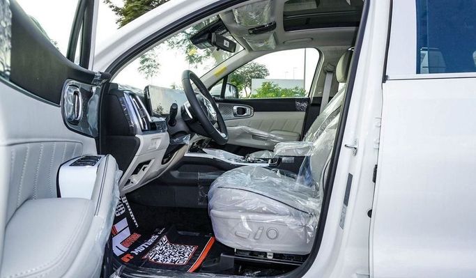 New Kia Sorento GLE 3.5L V6 for sale from Najem Motors FZE in Dubai. White 2025 model. The car has automatic gearbox, 6 cylinder engine, 17″ wheels and beige interior. GCC specs.