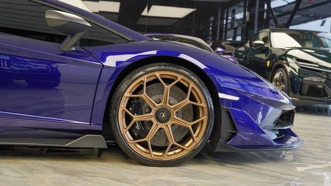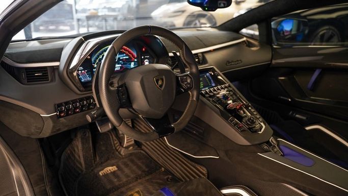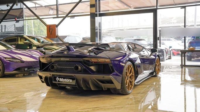 Lamborghini Aventador SVJ – 2019 (1 of 900 Worldwide) - Exterior: Special Purple finish – aggressive, exotic, instantly iconic - Interior: Full Black leather/Alcantara with SVJ detailing - Engine: 6.5L Naturally Aspirated V12 – 770 HP of pure raging bull power - Performance: 0–100 km/h in 2.8 seconds - Transmission: 7-speed ISR - Drive: All-wheel drive - Aero: ALA 2.0 Aerodynamic system with massive downforce - Wheels: Forged lightweight rims - Exhaust: Titanium sports exhaust with raw V12 soundtrack - Chassis: Carbon fiber everywhere – monocoque, aero kit, interior trim -