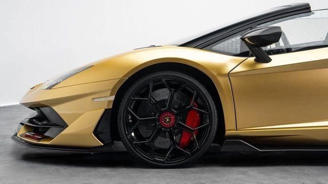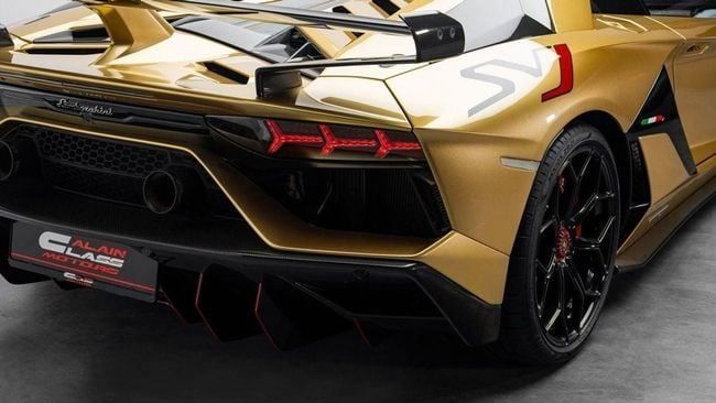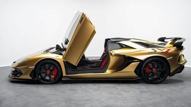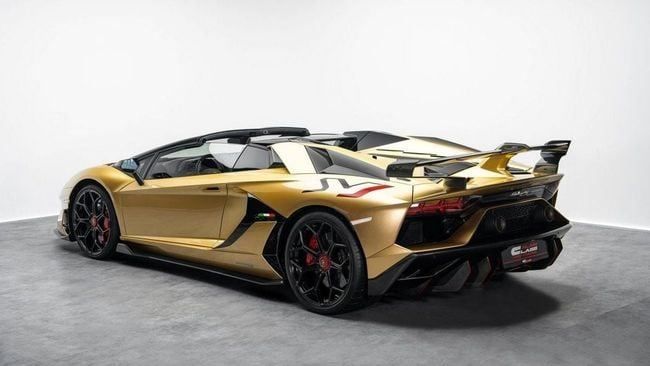 Selling Price: AED 2,550,000 Starting from: AED 38,675 per month Payable in 5 Years with 20% Down Payment Bank terms & conditions may apply 2021 Lamborghini Aventador SVJ Roadster Mileage: 11,774 Km GCC Specs Under Warranty till Jan 2026 Engine Size: 6.5L V12 Horsepower: 759 HP Exterior Color: Oro Elios Interior Color: Black | Red