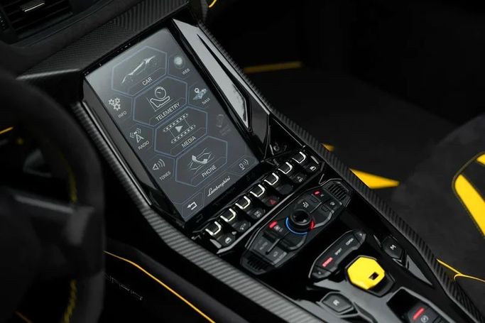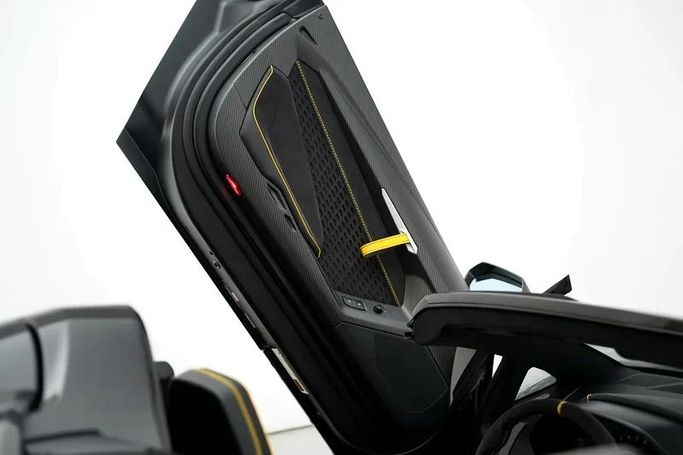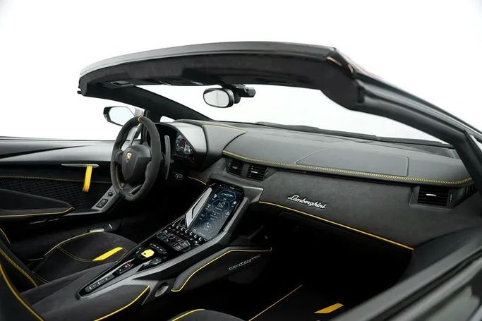 2017 LAMBORGHINI CENTENARIO Make : Lamborghini Model : Centenario Roadster Year : 2017 Regional Specs: Euro Horsepower : 759 HP Engine: V12 Displacement: 6498 CC Top Speed : >350 KPH 0-100 in: 2.8 seconds This Centenario Roadster showcases a full exposed carbon fiber body, highlighting its advanced, lightweight construction. It is powered by a formidable naturally aspirated 6.5-liter V12 engine, producing 759 horsepower for raw, visceral performance. This power allows for acceleration from 0-100 km/h in just 2.9 seconds, with a top speed exceeding 350 km/h. Its active aer