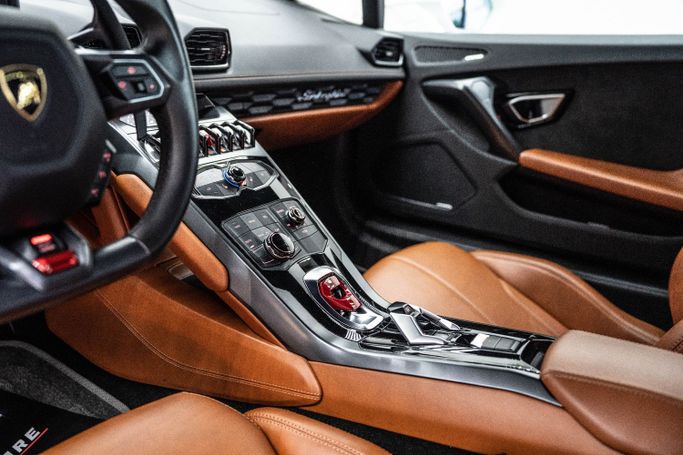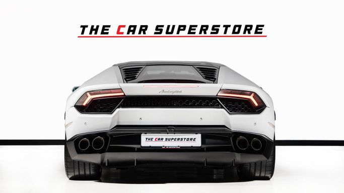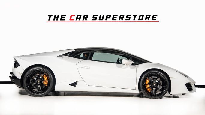 LAMBORGHINI MODEL : HURACAN LP 580-2 M/Y : 2017 MILEAGE : 17,560 KM EXTERIOR COLOR : Bianco Monocerus INTERIOR COLOR : Brown WARRANTY : 1 YEAR SPECS : Japanese OPTIONS : Carbon Roof Carbon forged engine cover 5204 cc, 10 Cylinders In V Shape, 4 Valves/Cylinder, DOHC Automatic – 7 Gears, Paddle Shift, Sport Mode TFT Display Rear wheel drive LEATHER SEATS Aluminum door scuff plates Leather Wrapped Steering Wheel Piano black inserts Alcantara inserts on doors Leather brown inserts on doors Black rims Orange calipers LAMBORGHINI crest on seats Brown stitching ENGINE : 5.2-lit
