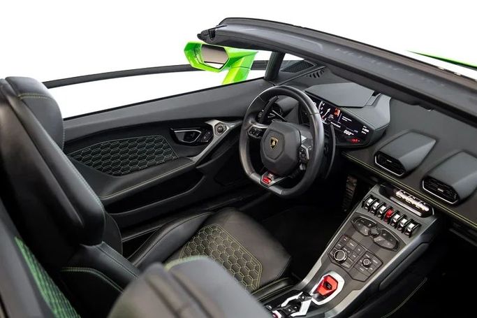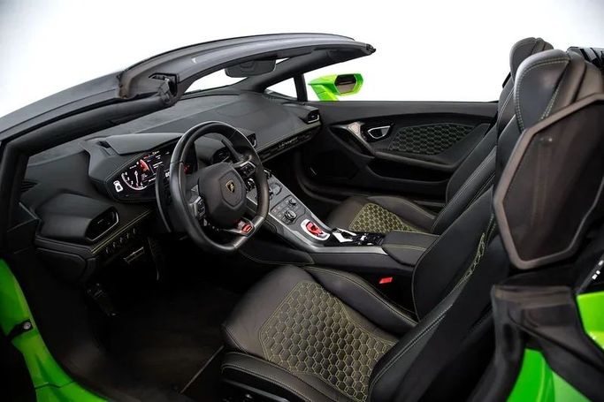 This 2019 Lamborghini Huracán EVO Spyder represents a single-owner, low-mileage example of the Gen I Facelift line. It wears a green exterior and pairs the open-air roadster form with a powered retractable soft top, delivering both the thrill of sun on your shoulders and the performance you expect from a V10 Lamborghini. Under the long hood sits a 5.2-liter engine producing 640 horsepower, routed through a seven-speed automated manual transmission and all-wheel drive to provide responsive power delivery and solid traction across varying road conditions. The EVO Spyder brin
