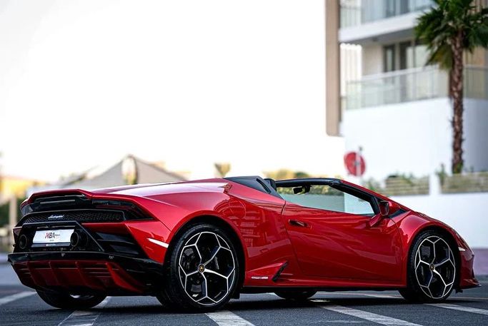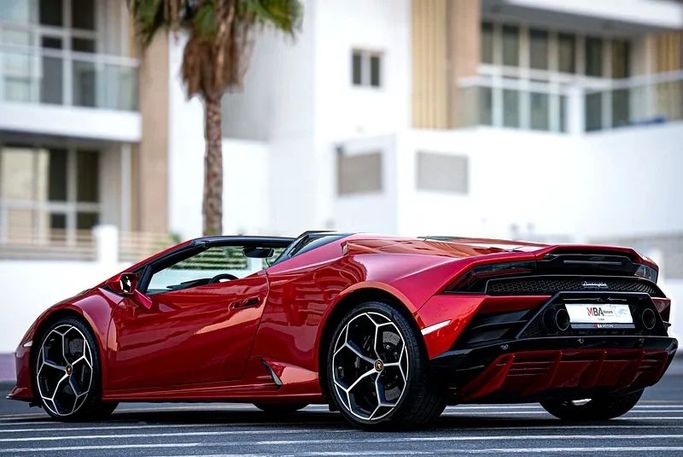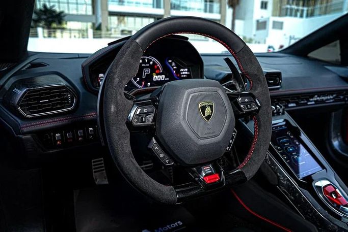 2023 Lamborghini Evo Spyder - Low Mileage - Red with Black Interior - Bucket Seats - Carbon Fiber Interior - Special Color Combination Location: Dubai For more information, please call us.