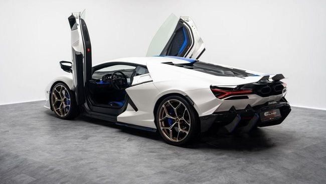 Selling Price: AED 2,995,000 Starting from: AED 45,424 per month Payable in 5 Years with 20% Down Payment Bank terms & conditions may apply 2024 Lamborghini Revuelto Mileage: 315 Km GCC Specs Under Warranty and Service Contract Engine Size: 6.5L V12 + Three Electric Motors Horsepower: 1,001 HP Exterior Color: Ballon White | Blue Interior Color: Black | Blue