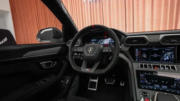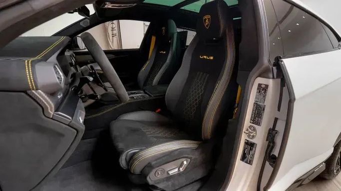 The Lamborghini Urus Performante is the boldest evolution of the world’s most powerful SUV—a fusion of supercar performance and everyday usability. Finished in Bianco with a black Alcantara interior and yellow contrast stitching, this configuration is both aggressive and elegant, showcasing Lamborghini’s unmistakable DNA. Its 657 hp twin-turbo V8 delivers breathtaking acceleration, while extensive carbon fiber details—from the hood to the diffuser—underscore its racing spirit. The 23-inch Performante alloy wheels and sport exhaust system enhance both stance and sound. On Du