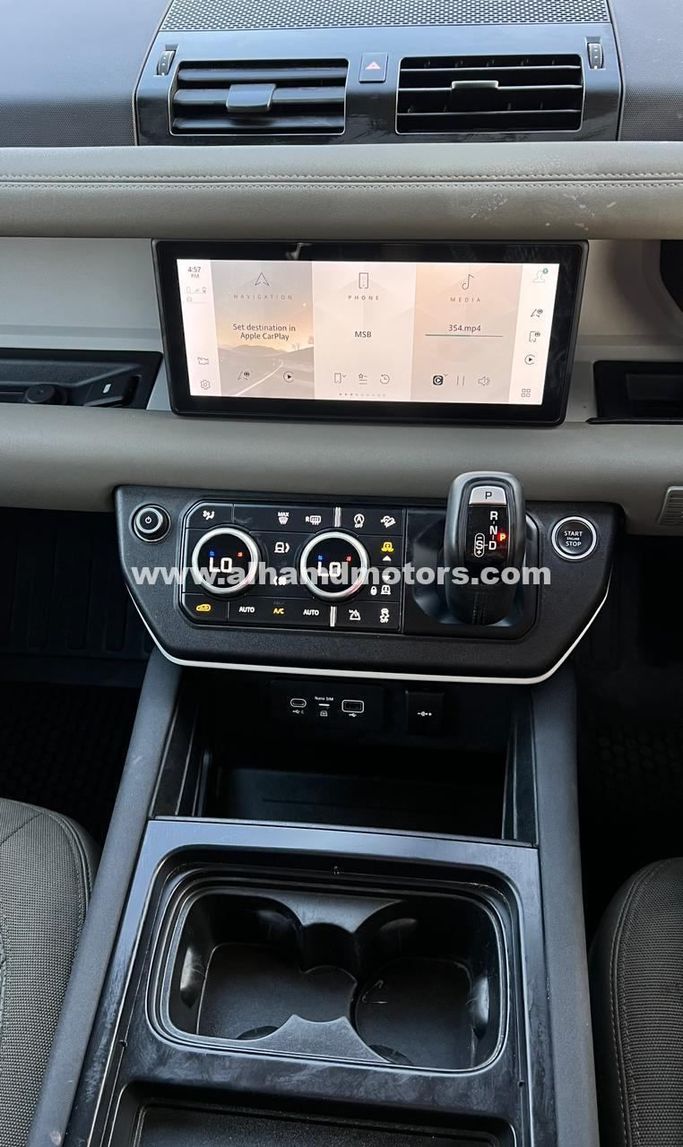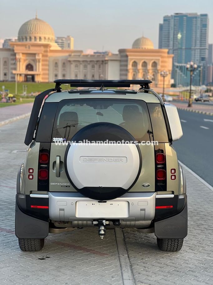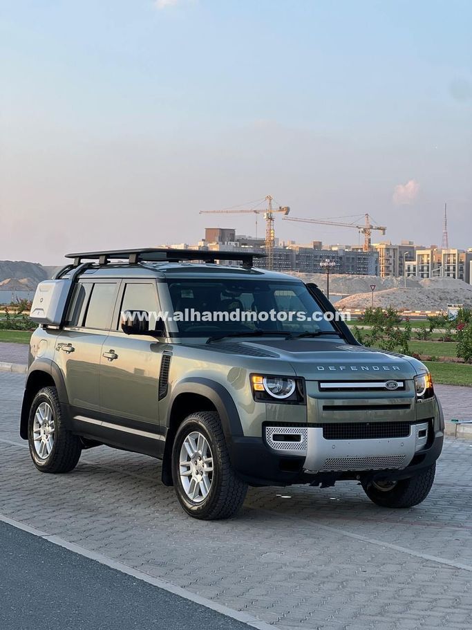 RANGROVER DEFENDER USED VEHICLE COLOUR GREEN MODEL 2020 4WD AT DIESEL ENGINE 6 CYLIENDER 3.0 CC LEATHER SEAT ALLOY WHEEL POWER STREEING POWER WINDOW AC ABS AIR BAG RADIO POWER SEAT RADIO TV BACK TYRE CENTRAL LOCKING JACK SPARE WHEEL BACK CAMERA PUSH START KEYLESS ENTRY TURBO USED TYRE AUSTRALIAN SPEC