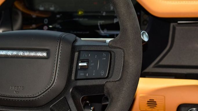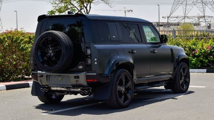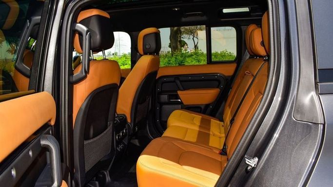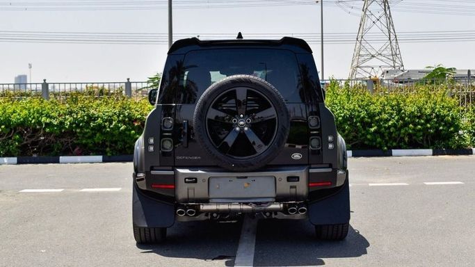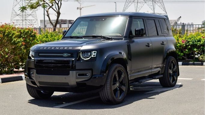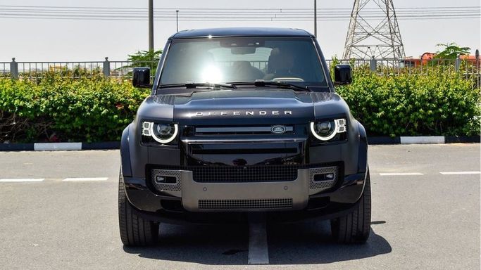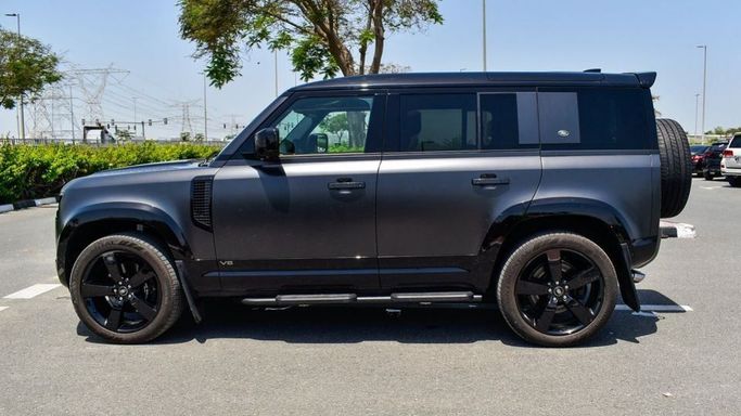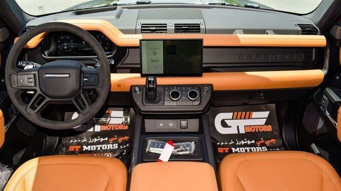Brand new Land Rover Defender V8 for sale in Dubai. Black 2024 model, available at Najem Motors FZE. This car has automatic transmission, 8 cylinder engine, 20″ wheels and tan interior. European specs.