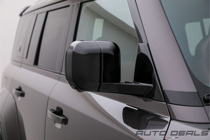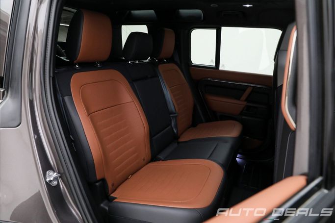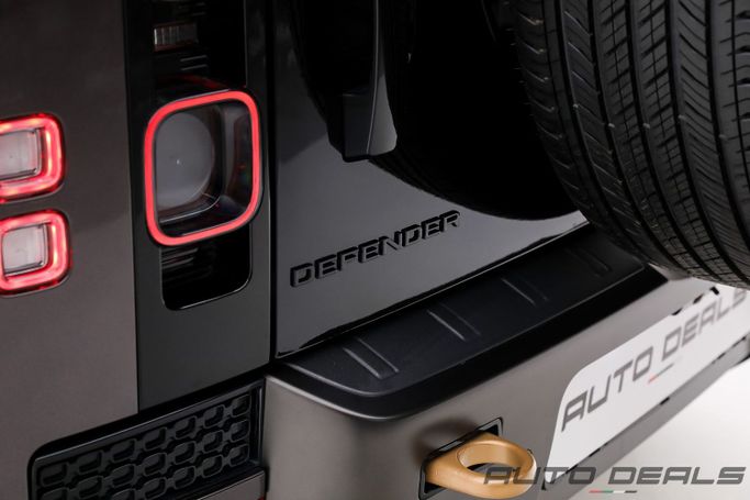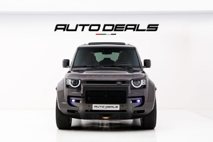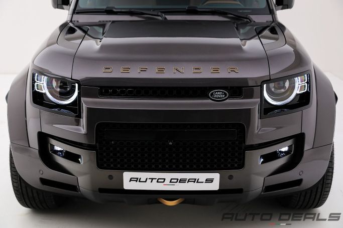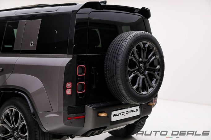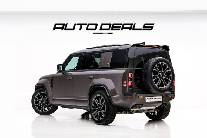 New 2025 Land Rover Defender 110 Octa II, a 5-door SUV in grey, is powered by a 4.4-liter petrol engine delivering 635 hp, paired with an eight-speed automatic transmission and all-wheel drive. The Octa-based modification emphasises performance while keeping Defender's practical versatility, delivering confident on-road manners alongside formidable off-road capability. Inside, the cabin blends premium materials with modern technology for comfort and convenience, offering supportive seating for five and generous cargo space, plus intuitive infotainment and driver-assistance