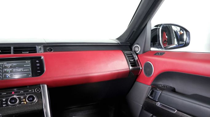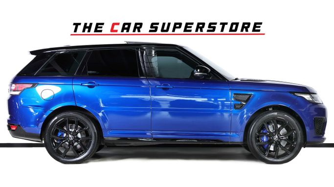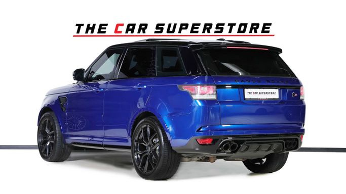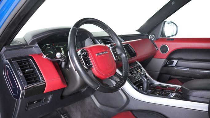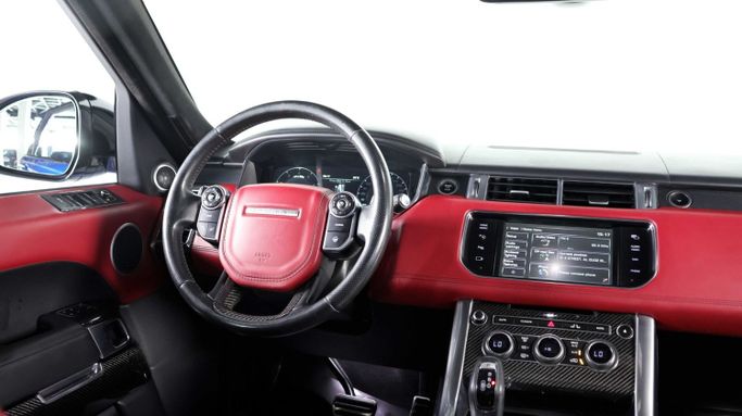Range Rover MODEL : Sport SVR M/Y : 2015 MILEAGE : 174,958 KM EXTERIOR COLOR : Estoril Blue INTERIOR COLOR : Red/Black Under service contract till 2027 SPECS : GCC OPTIONS : 22 Inch High Gloss Black Rims Bluetooth Handsfree and Audio 360 Degree View cameras Panoramic Roof 2 Tone Interior Red/Black Carbon Fiber Interior Trim Meridian Premium Surround Sound System Premium Metallic Paint Estoril Blue Sports SVR Seats Park Pilot Self Parking Quad Zone A/C ENGINE : 5.0L Supercharged CYLINDERS : V8 HP : 575 0-100 km/h : 4.7 sec.