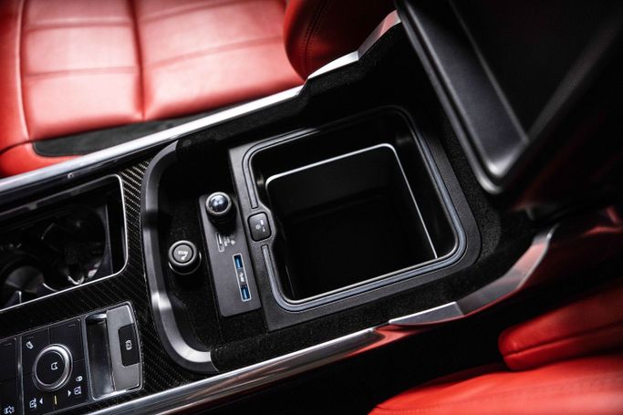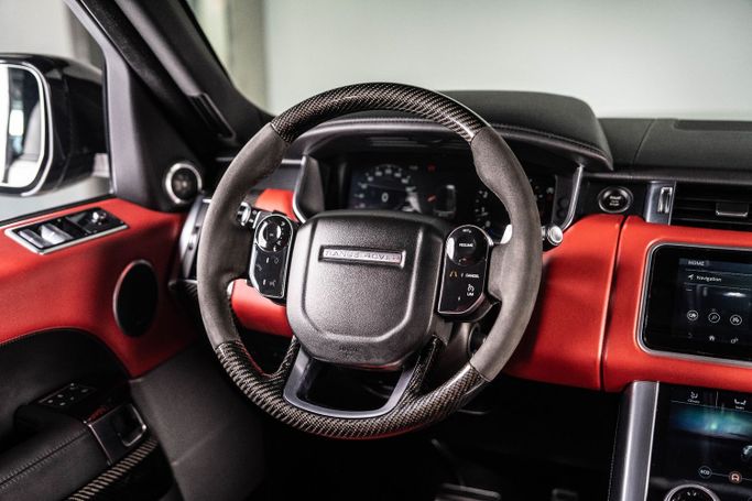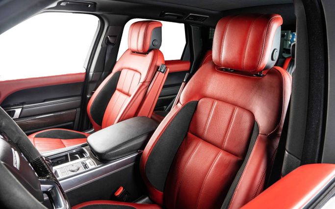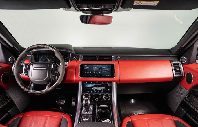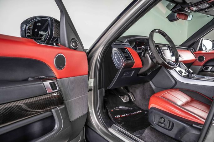 BRAND : RANGE ROVER MODEL : SPORT HST SUPERCHARGED M/Y : 2019 MILEAGE : 110,939 KM EXTERIOR COLOR : Silver Champagne INTERIOR COLOR : Black Contrast Red SERVICE HISTORY FULL WITH AL TAYER SPECS : GCC OPTIONS : Full carbon exterior and interior package Sunroof Big wheels Red calipers Ambient lights Apple CarPlay Meridian sound system Ventilated and memory seats Two tone ivory seats leather Electric side steps Keyless start Carbon fiber and Alcantara steering wheel Two tone red and black interior ENGINE :3.0-liter Supercharged CYLINDERS : V6 HP : 395 hp 0-100 km/h : 6.6 sec